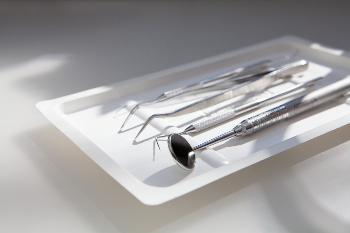 検査器具やレントゲンで、歯やあごの骨の状態を調べます。